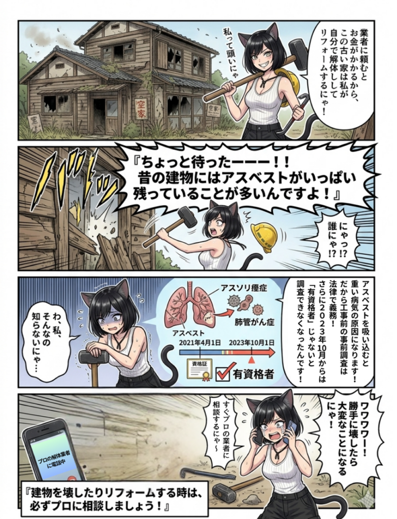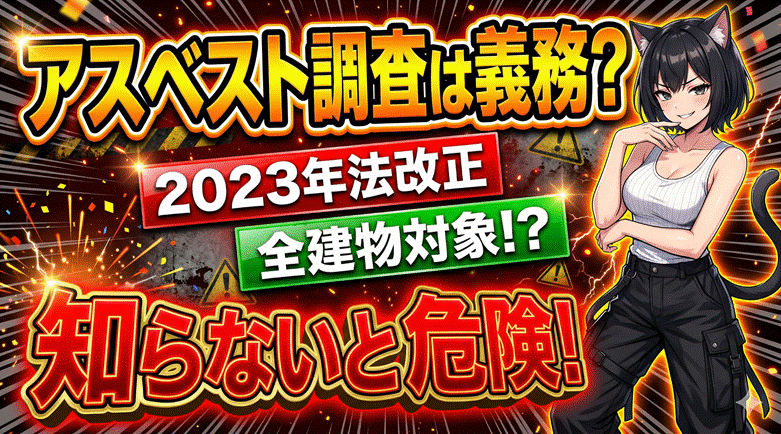 世界から危険なアスベストをなくしたいと活動する「アス」こと石渡アスカさんが、アスベスト調査の義務化について分かりやすく解説しています 。建物の解体やリフォームを考えている方は必見の内容です。